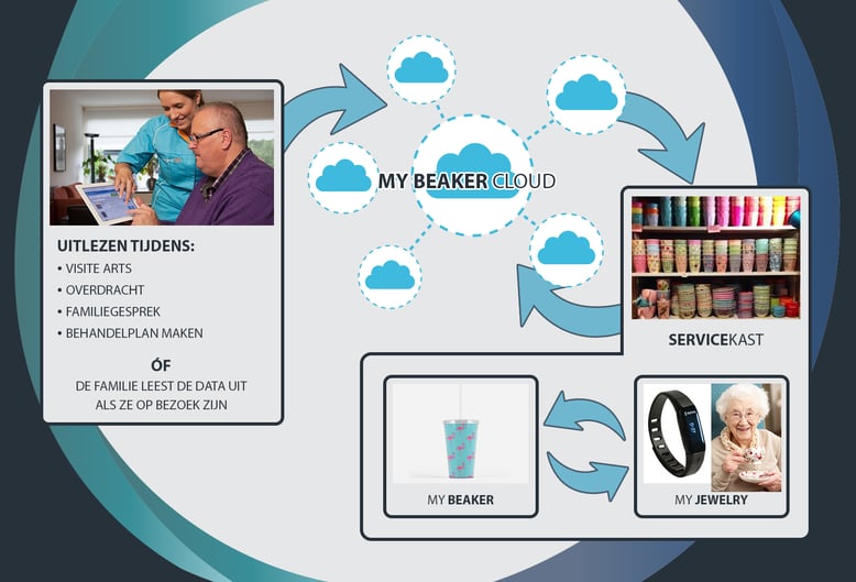 Wij krijgen regelmatig de vraag van zorgverleners om Beakers te koppelen aan het elektronisch patiënten/cliënten dossier. Dit kan met My Beaker system. Via een slimme manier worden alle Beakers uitgelezen als ze in de kast worden opgeborgen. Tevens is het systeem uit te breiden met My Jewellery. Dit is een polsbandje, net als in het ziekenhuis, waarmee Beakers de patiënt kunnen herkennen. Hiermee kan iedere patiënt iedere Beaker gebruiken zodat uitdelen makkelijker wordt.